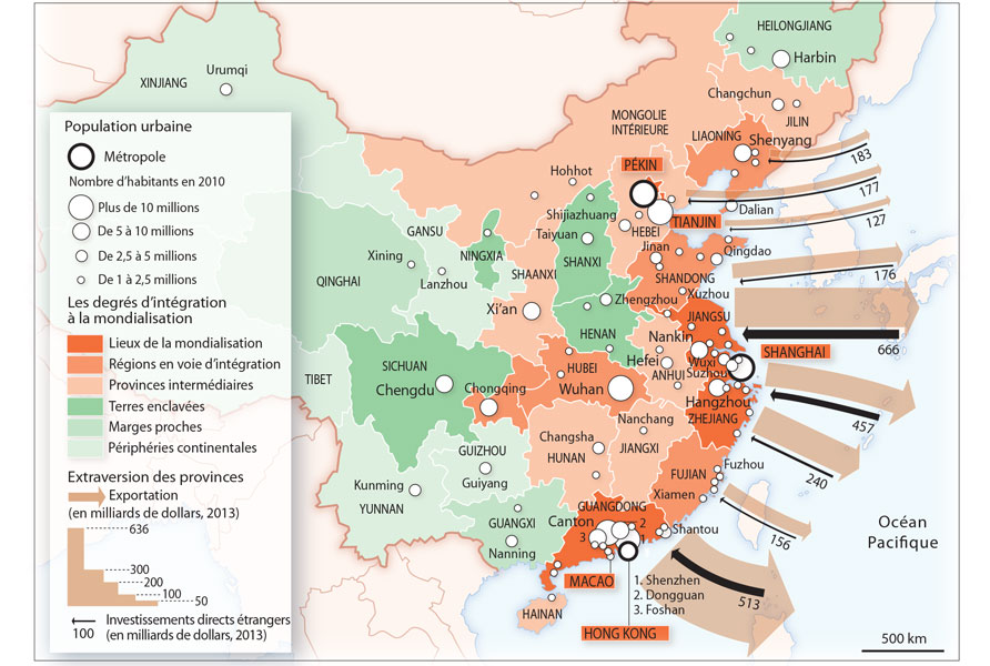 Aujourd'hui, cette distinction régionale est-elle toujours opératoire ? Une nouvelle géographie du territoire chinois n'est-elle pas à construire intégrant les pôles de croissance aussi bien intérieurs que littoraux, les corridors de développement et les échelles du développement du local aux national et supranational ? |