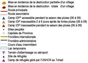 [16] Le bilan, approximatif et provisoire, du conflit du Darfour depuis le début de la guerre civile, en 2005, est le suivant : 70 000 personnes tuées ; 1,65 million déplacées ; 200 000 réfugiées au Tchad.