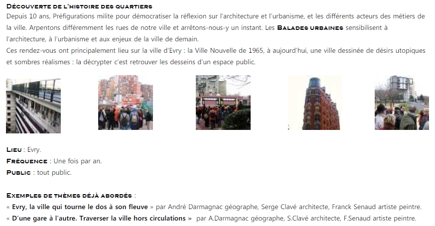 - Evry, la ville qui tourne le dos à son fleuve, www.prefigurations.com/l-association/balades-urbaines