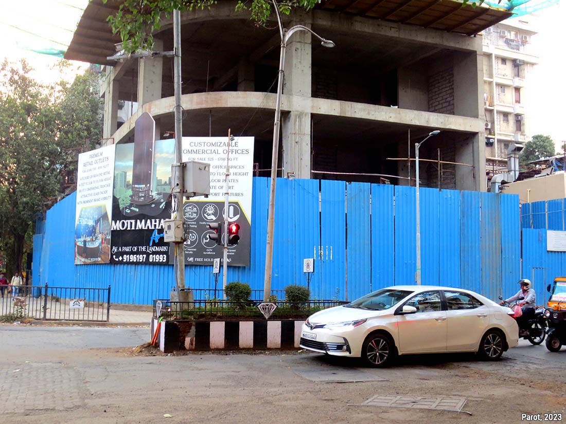 « Be a part of the landmark » : affiche publicitaire sur les palissades d’un futur immeuble de bureaux dans le quartier de Bandra à Mumbaï (Maharashtra, Inde)