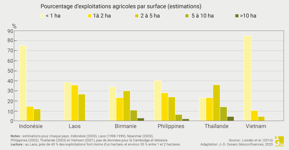 Surfaces agricoles moyennes par exploitation selon les pays en Asie du Sud-Est