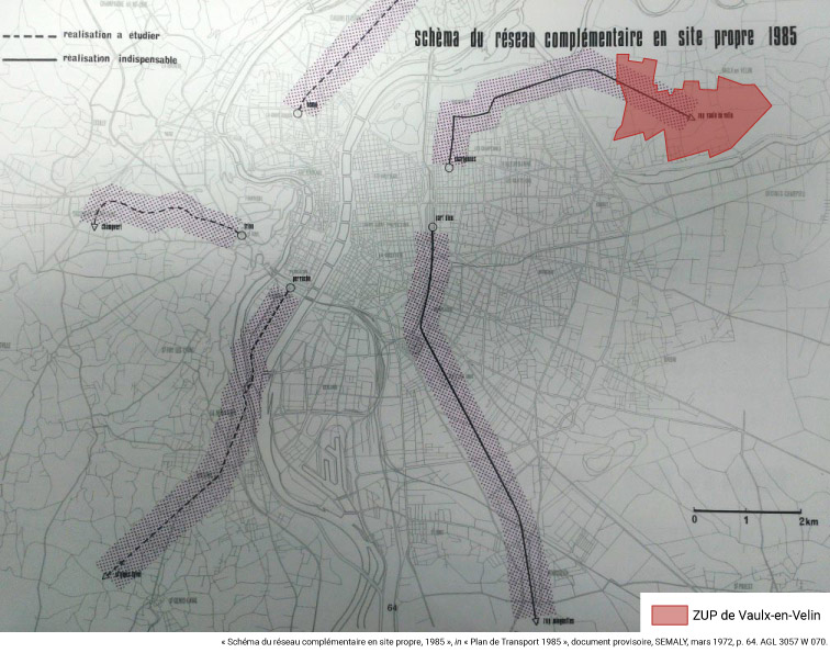 Schéma du réseau complémentaire en site propre, 1985 (abandonné ensuite)