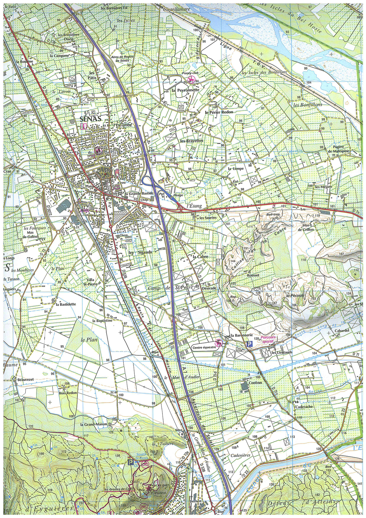 Extrait de carte topographique de l'IGN et légende : Sénas, Bouches-du-Rhône, région PACA