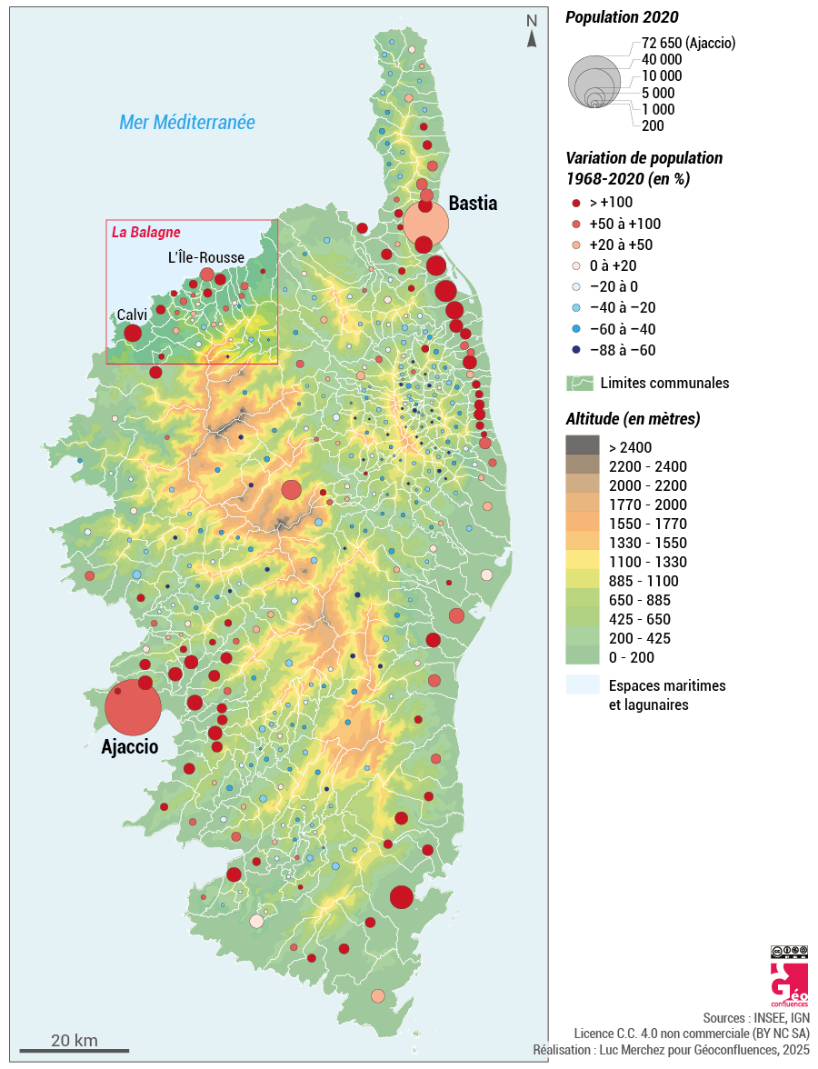 La Balagne en Corse, populations communales et leur évolution depuis 1968