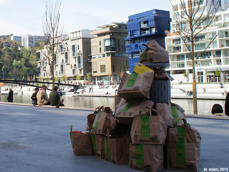 Déchets alimentaires dans la rue (McDonald's), centre commercial Confluence, Lyon