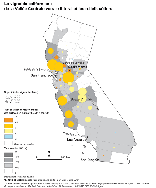 Raphaël Schirmer, « Le vignoble californien, vignoble de la mondialisation », Géoconfluences, juillet 2015.