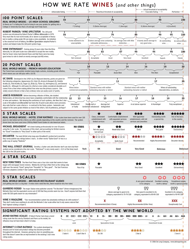 Le système de notations des vins aux États-UnisSource : De Long blog, How we rate wines, 6 mars 2006. |