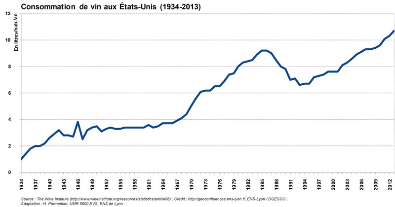 La consommation de vin aux États-Unis (1934-2013) |