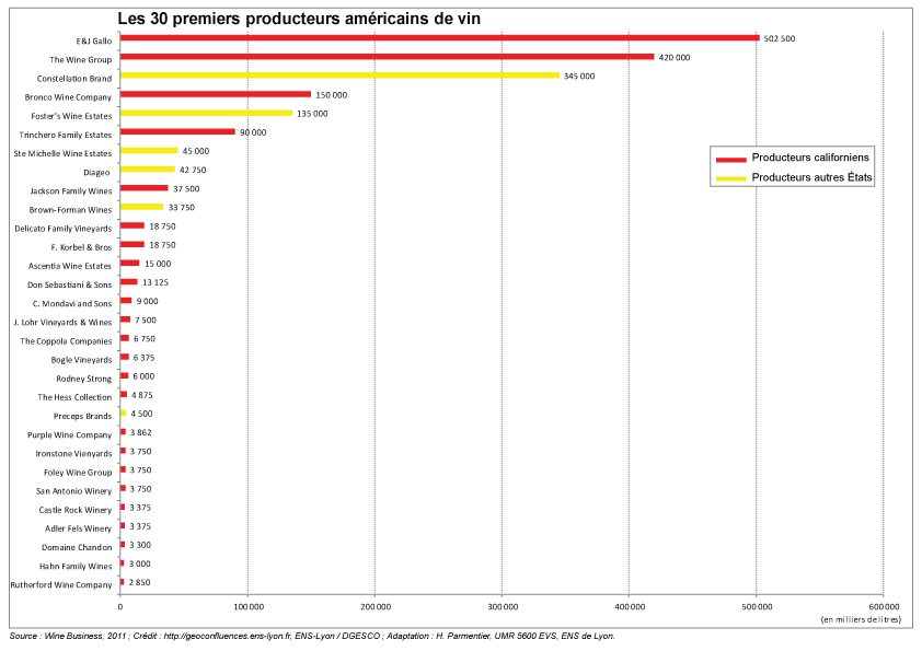La place des Californiens parmi les plus grands producteurs américains de vin |