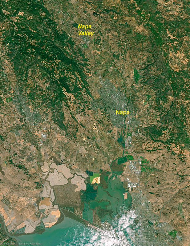 Image satellite de la vallée de la Napa en 2012Source : Image Spot 6, Airbus Defence & Space, 17 octobre 2012. |