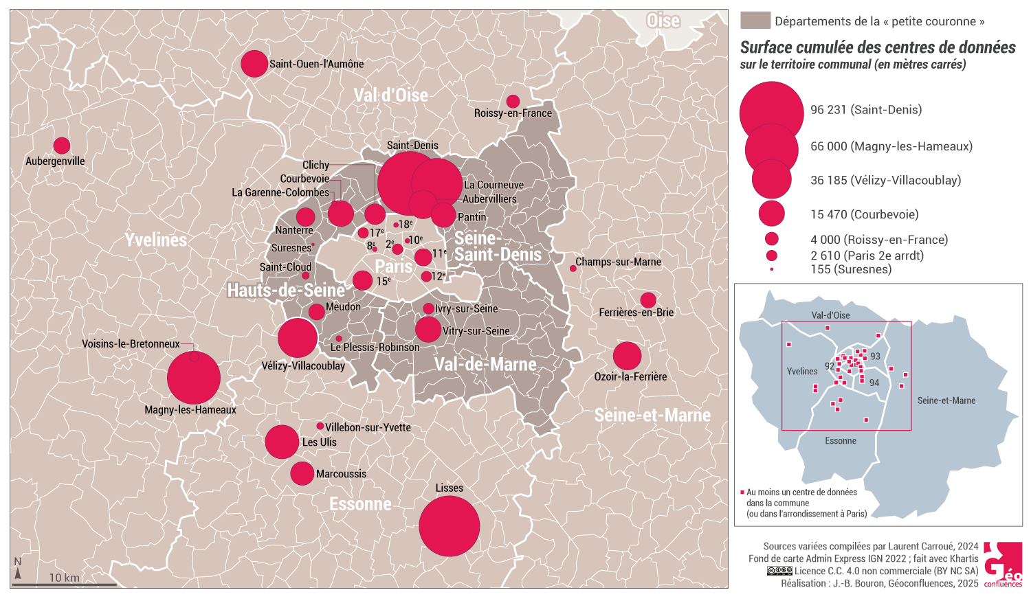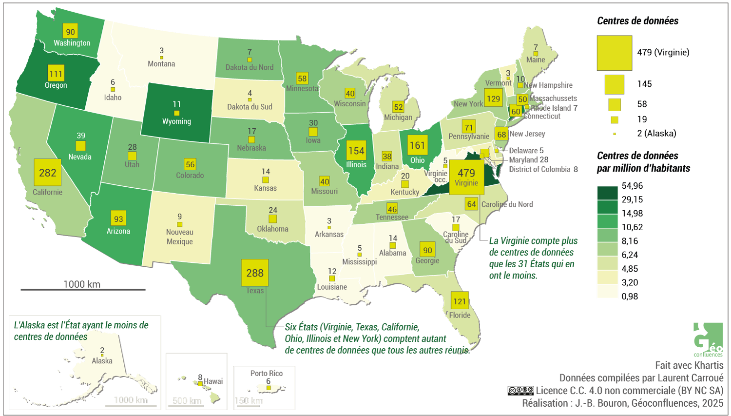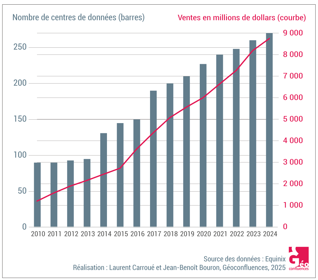 Laurent Carroué, « L’essor des centres de données : intelligence artificielle, cyberespace, pouvoir et territoire », Géoconfluences, juillet 2025.
